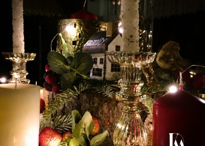 Para este projeto inspirei-me nos troncos de pinheiro. Foram a primeira escolha. Depois, apaixonei-me pelos passarinhos, pelas renas e pelas casinhas….e pelas velas…. Apaixonei-me e pronto. O resultado final representa uma pequena aldeia, plena de luz e muito amor.